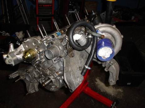 Hierboven de motor compleet samengesteld nog voor de inbouw. Op dit plaatje compleet na inbouw. |